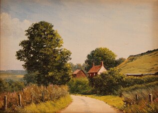Differences - Hedgerow is green, road is a slightly different layout, there seems to be more foliage behind the house from the trees, the hill behind the house is greener and the sky is more blue. See if you can spot anything else.